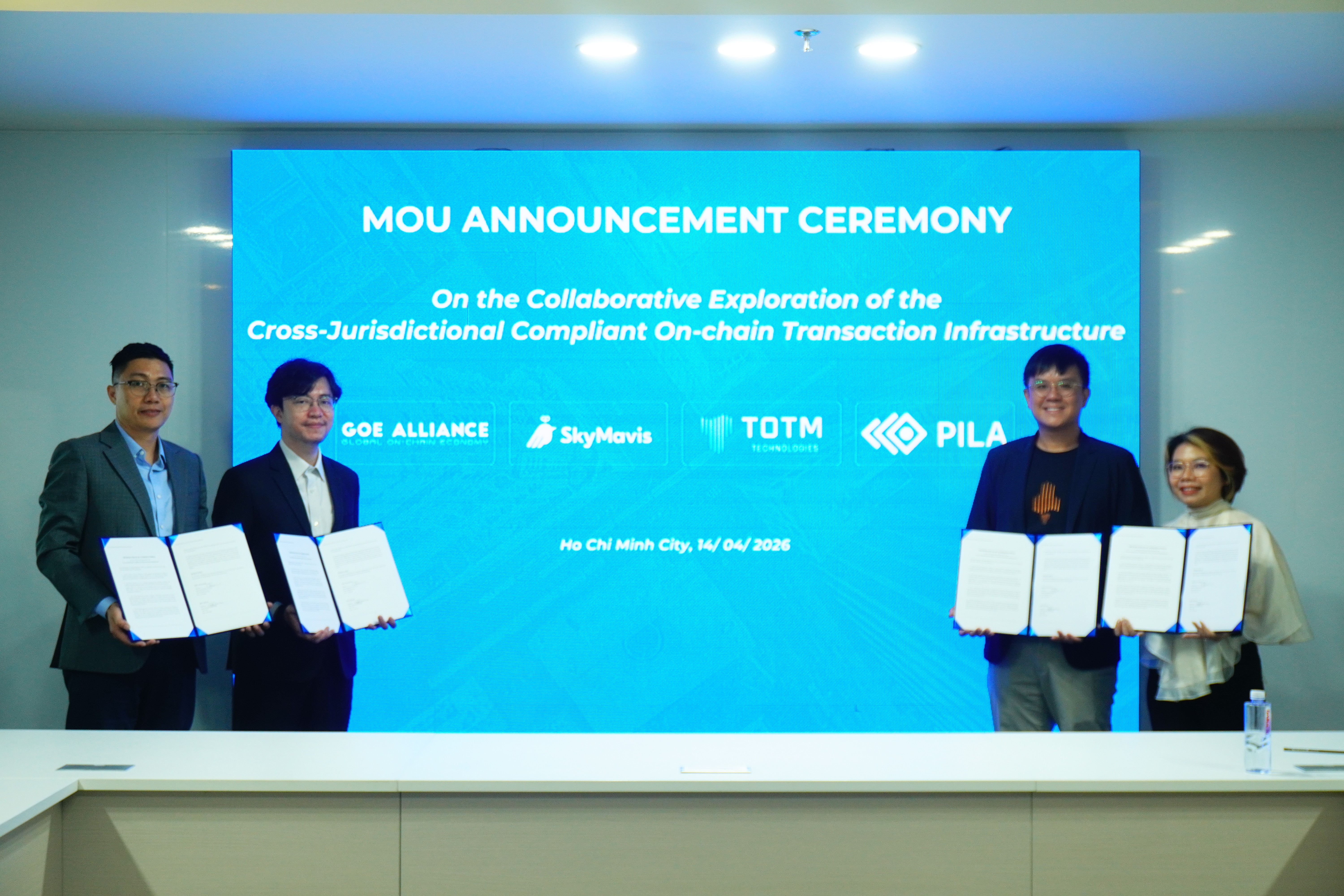 To formalize the exploration, GOE Alliance, Sky Mavis, PILA, and TOTM Technologies have executed a Memorandum of Understanding for the Collaborative Exploration of Cross-Jurisdictional Compliant On-chain Transaction Infrastructure.